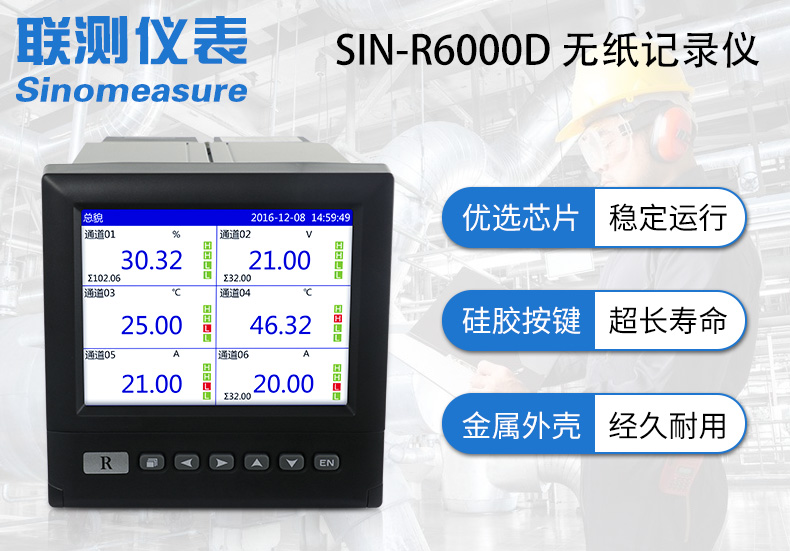 產品簡介:SIN-R6000D系列無紙記錄儀是一種高速高性能微處理器和5.6英寸彩色液晶顯示屏,對現場各種溫度、壓力、流量、電量等信號實現監測、控制和記錄功能。 SIN-R6000D系列無紙記錄儀可自由組態輸入標準電流、標準電壓、熱電偶、熱電阻、頻率等信號,可實現為傳感器配電和繼電器報警輸出,并且可通過U盤或通訊方式與上位機進行數據交換。