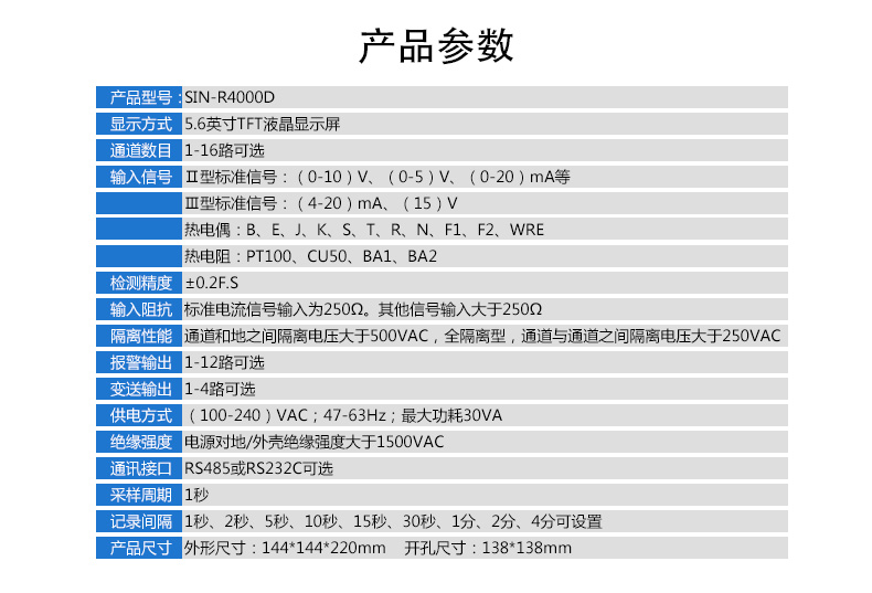 聯測SIN-R4000D5.6英寸藍屏無紙記錄儀