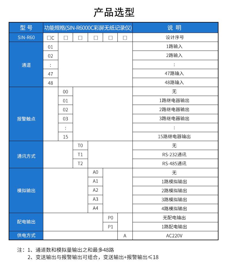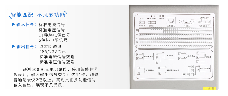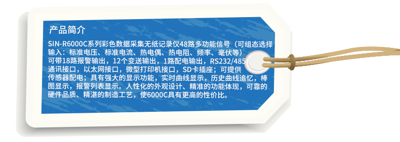 產(chǎn)品簡(jiǎn)介:SIN-R6000C系列彩色無紙記錄儀48路萬能輸入(可組態(tài)選擇輸入:標(biāo)準(zhǔn)電壓、標(biāo)準(zhǔn)電流、熱電偶、熱電阻、頻率、毫伏等)。可帶18路報(bào)警輸出,12個(gè)變送輸出,RS232/485通訊接口,以太網(wǎng)接口,微型打印機(jī)接口和USB接口,SD卡插座;可提供傳感器配電;具有強(qiáng)大的顯示功能,實(shí)時(shí)曲線顯示,歷史曲線追憶,棒圖顯示,報(bào)警列表顯示。