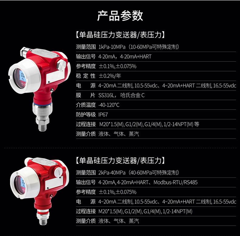 產品簡介:SIN-P3000單晶硅壓力變送器用于測量液體、氣體或蒸汽的液位、密度、壓力,然后將其轉變成4-20mAHART電流信號輸出,也可與HART375或BST Modem相互通信,通過他們進行參數設定、過程控制。與傳統壓力變送器的區別在于它使用的是納米單晶硅作為傳感器材料。