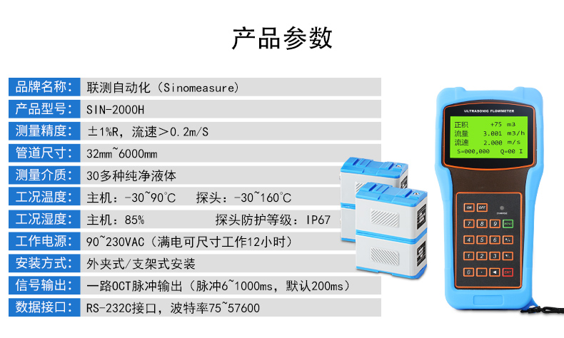 產品簡介:SIN-2000H手持式超聲波流量計,是目前國內體積小、質量輕、真正意義上的便攜式超聲波流量計,該款產品具有數據自動存儲、測量精度高、全中文顯示、操作靈活等特點,性價比高。