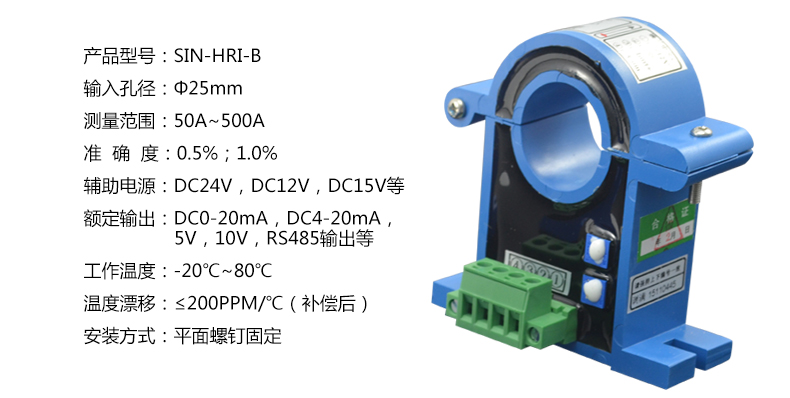 產品簡介:電流變送器可以直接將被測主回路交流電流或者直流電流轉換成按線性比例輸出DC4~20mA(通過250Ω 電阻轉換DC 1~5V或通過500Ω電阻 轉換DC2~10V)恒流環標準信號,連續輸送到接收裝置(計算機或顯示儀表)。