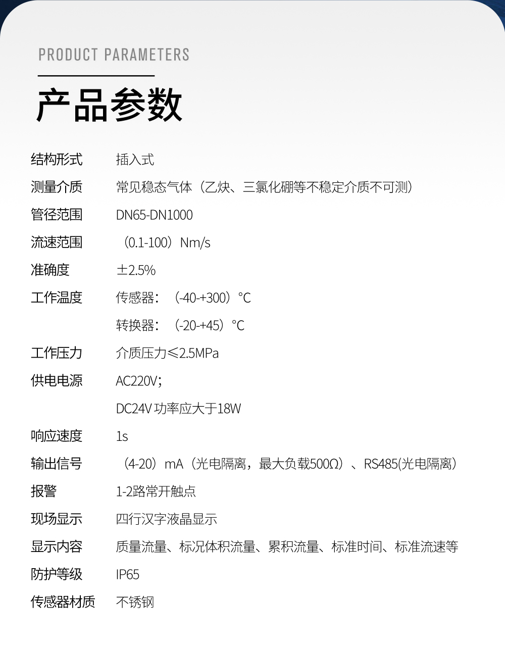 產品簡介:熱式氣體質量流量計是基于熱擴散原理而設計的,該儀表采用恒溫 差法對氣體進行準確測量。具有體積小、數字化程度高、安裝方便,測量準確等優點。