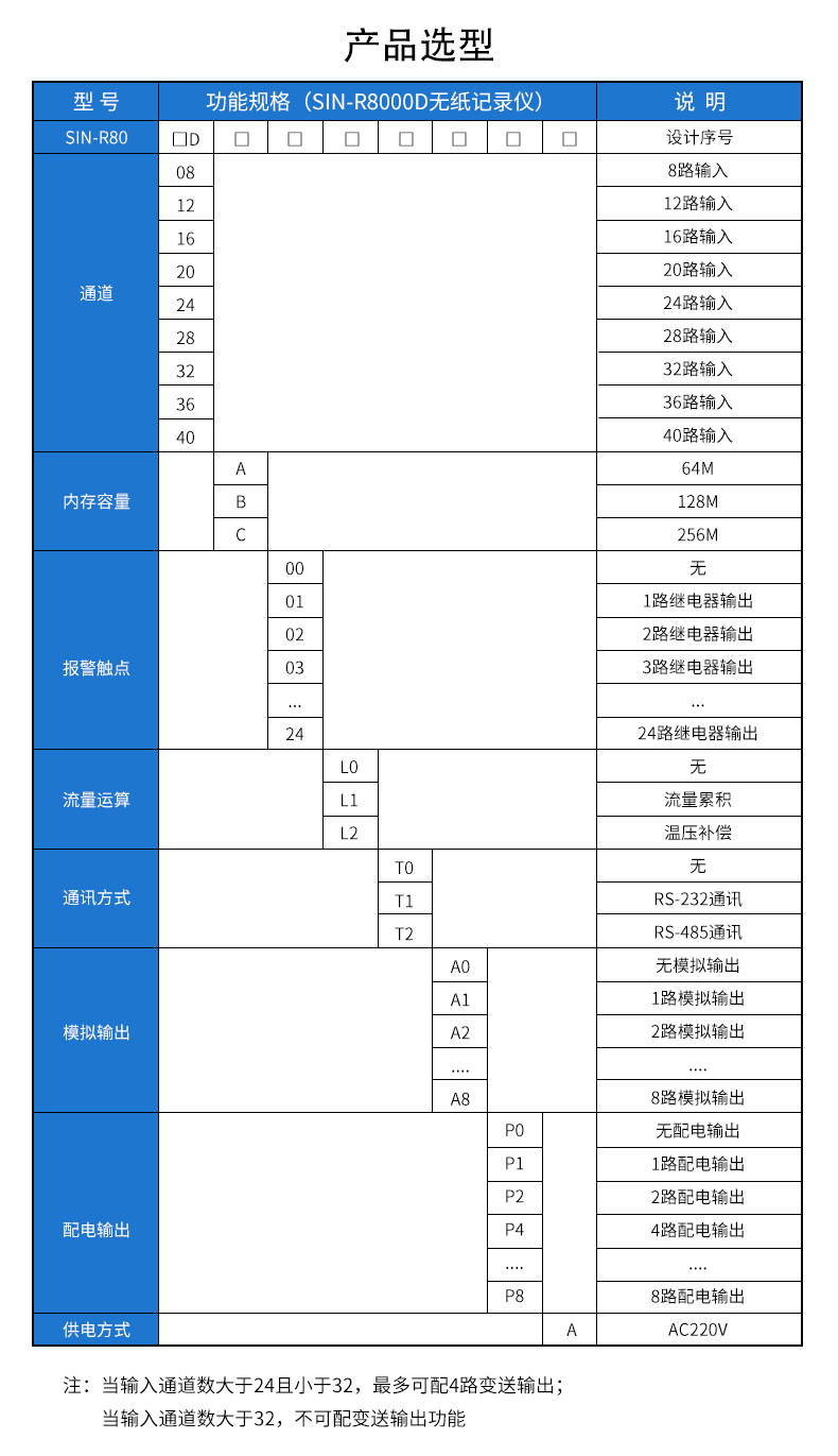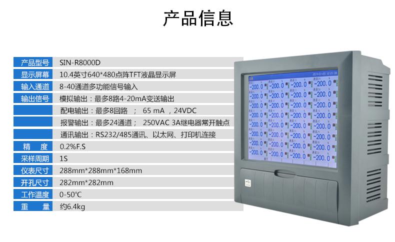 產(chǎn)品簡介:SIN-R8000D系列無紙記錄儀采用高速、高性能32位ARM微處理器,可同時(shí)實(shí)現(xiàn)40路信號采集,具有傳感器隔離配電輸出、繼電器報(bào)警輸出、變送輸出、流量積算、溫壓補(bǔ)償、累積報(bào)表、歷史數(shù)據(jù)轉(zhuǎn)存、打印以及遠(yuǎn)程通訊功能。