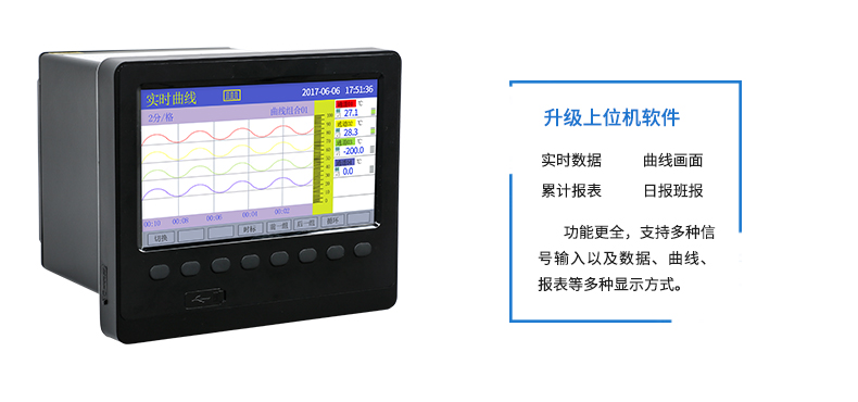 產(chǎn)品簡(jiǎn)介:SIN-R6000C系列彩色無紙記錄儀48路萬能輸入(可組態(tài)選擇輸入:標(biāo)準(zhǔn)電壓、標(biāo)準(zhǔn)電流、熱電偶、熱電阻、頻率、毫伏等)。可帶18路報(bào)警輸出,12個(gè)變送輸出,RS232/485通訊接口,以太網(wǎng)接口,微型打印機(jī)接口和USB接口,SD卡插座;可提供傳感器配電;具有強(qiáng)大的顯示功能,實(shí)時(shí)曲線顯示,歷史曲線追憶,棒圖顯示,報(bào)警列表顯示。