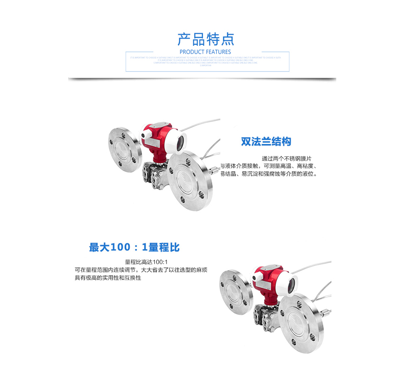 產(chǎn)品簡介:SIN-2051DP雙法蘭差壓液位變送器是一種為避免被測介質(zhì)直接作用于變送器的遠(yuǎn)傳隔離膜片接觸而采用的差壓式變送器(結(jié)構(gòu)測量法)。