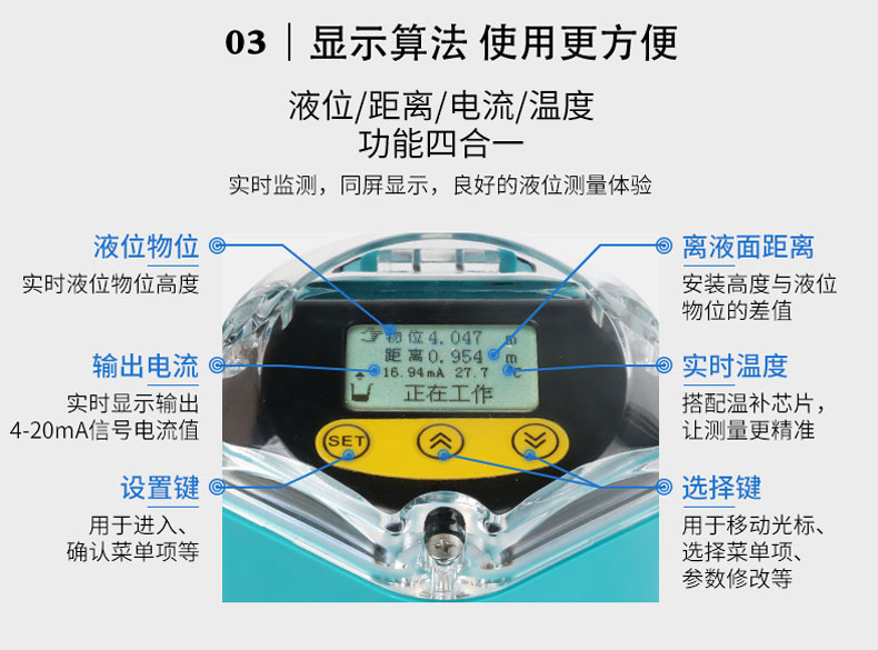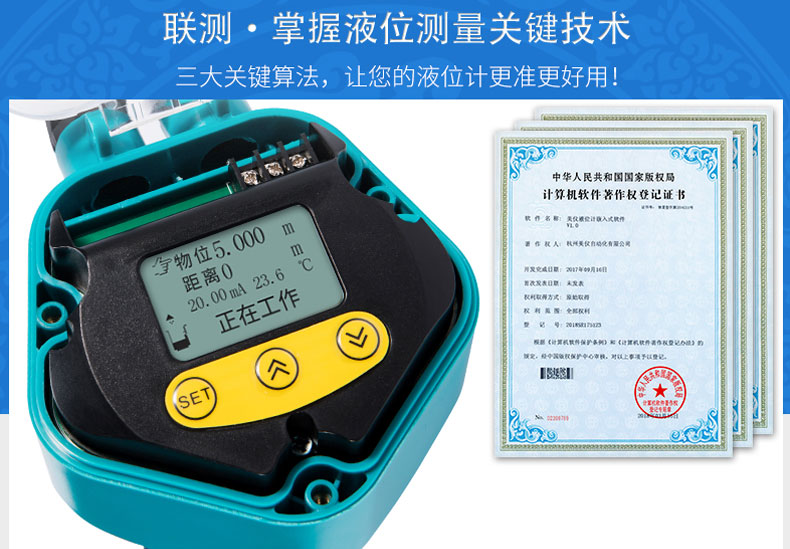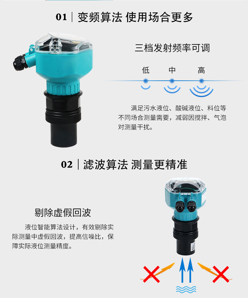產(chǎn)品簡介:在測量中超聲波脈沖由傳感器(換能器)發(fā)出,聲波經(jīng)液體表面反射后被同一傳感器接收或超聲波接收器,通過壓電晶體或磁致伸縮器件轉(zhuǎn)換成電信號(hào),并由聲波的發(fā)射和接收之間的時(shí)間來計(jì)算傳感器到被測液體表面的距離。 由于采用非接觸的測量,被測介質(zhì)幾乎不受限制,可廣泛用于各種液體和固體物料高度的測量。